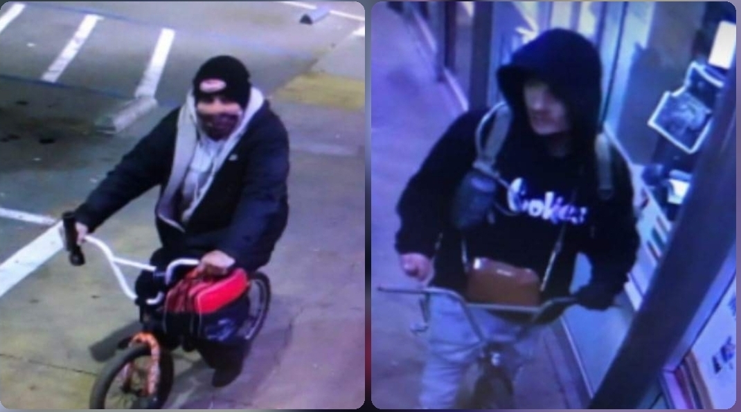 Merced Police say these two suspects broke the windows at the 7-eleven located on Loughborough Drive. Police say it happened early this morning at around 2:21 a.m., the suspects also stole several items and then rode off on bicycles.